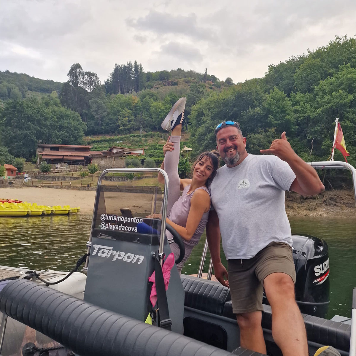 200% recomendable. Ha sido una maravilla de experiencia. Cristina súper profesional y nos informó de las opciones grupales o-y individuales de alquiler de barca. Juan y ella hacen un tandem simpático, puntual y amable. El entorno inmejorable. Para nosotros un referente en la ribera sacra y una excelente excursión para visitar el rio, alguna que otra sorpresa y la Cascada Agua Caída. Muy buen precio y gran diferencia de trato y tipo de embarcaciones de otras compañías de la zona. No te la pierdas. De corazón. Gracias por tan excelente día y el espectacular paisaje
